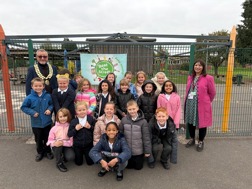 Pictured above - More Year 3 pupils from Woodbridge Junior School in Alfreton pictured with Councillor Amina Burslem from Amber Valley Borough Council and Councillor Steve Marshall-Clarke, the Mayor of Amber Valley, during the Beat the Street Alfreton launch event.